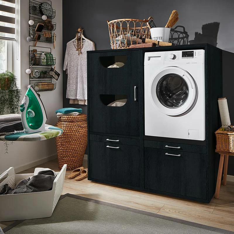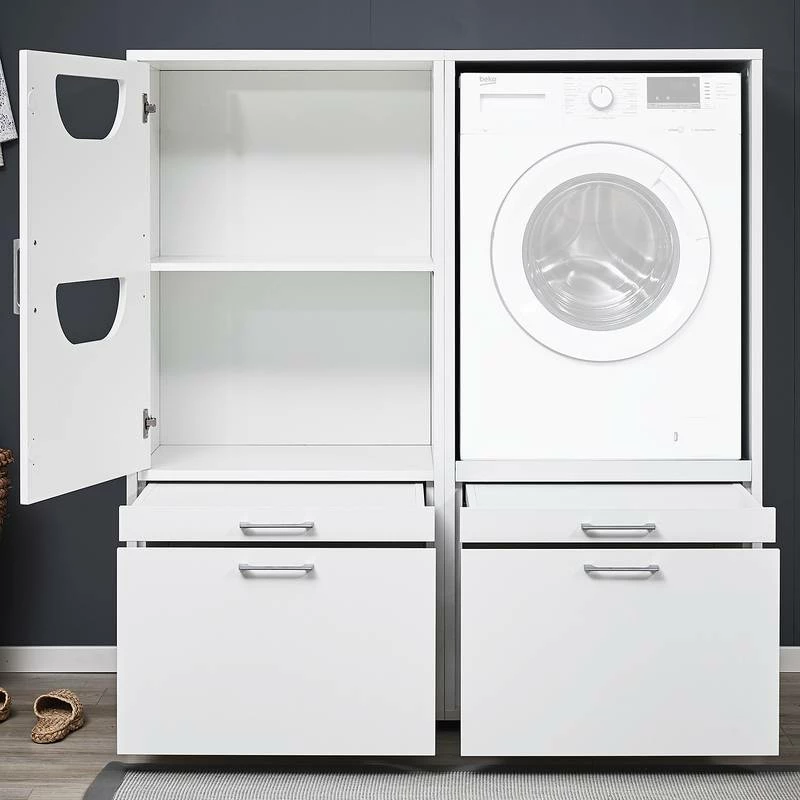 - Ensemble composé de 2 armoires pour machine à laver et d’1 caisson haut