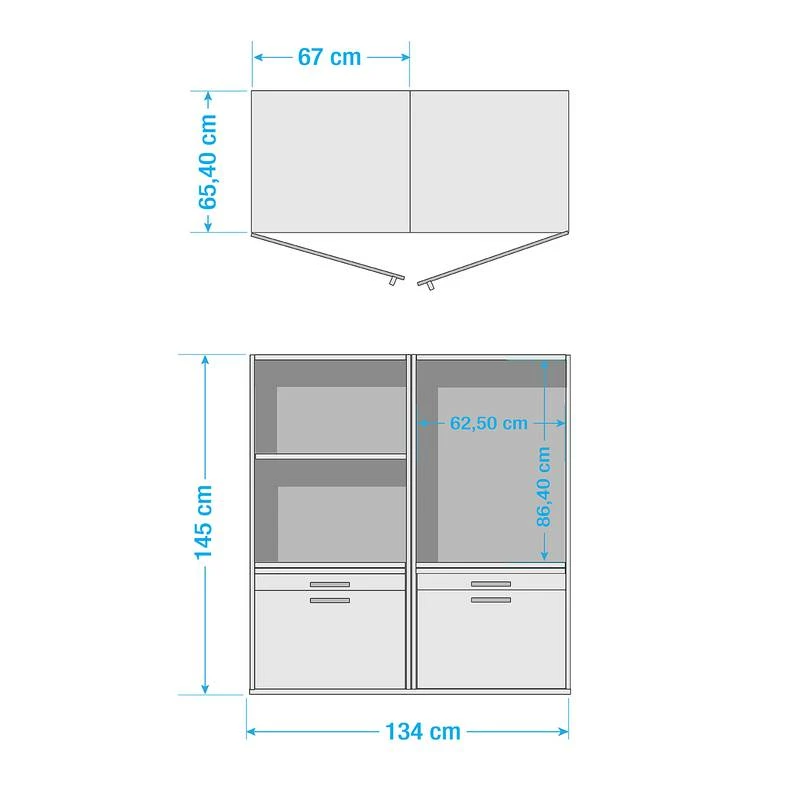 - Armoire pour machine à laver (L x H x P) chaque : 67 x 145 x 65,4 cm