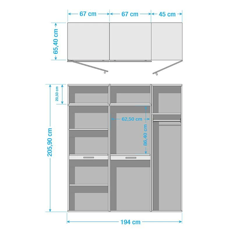- Armoire pour machine à laver (L x H x P) chaque : 67 x 185 x 65,4 cm